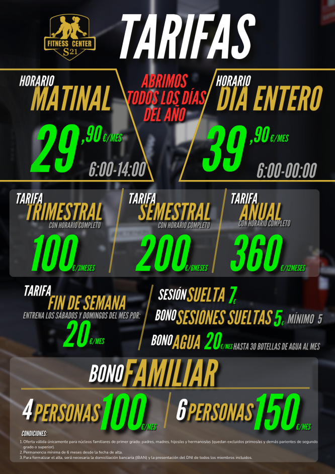 "De esta forma, Fitness Center S21 cumple con lo que denominan su “triángulo diferenciador”: “Un horario amplio, un servicio profesional con monitores que asesoran y supervisan a los clientes de forma continua, y una maquinaria de alta gama con las mejores marcas internacionales”."